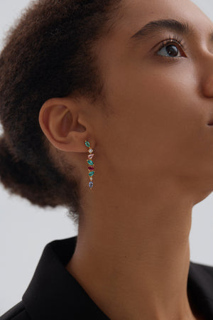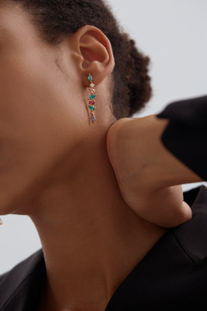 Adding a romantic twist to the classic tennis chain style, the Luna Cascade Earrings feature a cascade of irregularly shaped gemstones for an elegant, flowing look. Designed for fluid movement and a touch of whimsy, these earrings are perfect for those who embrace bold and refined beauty.