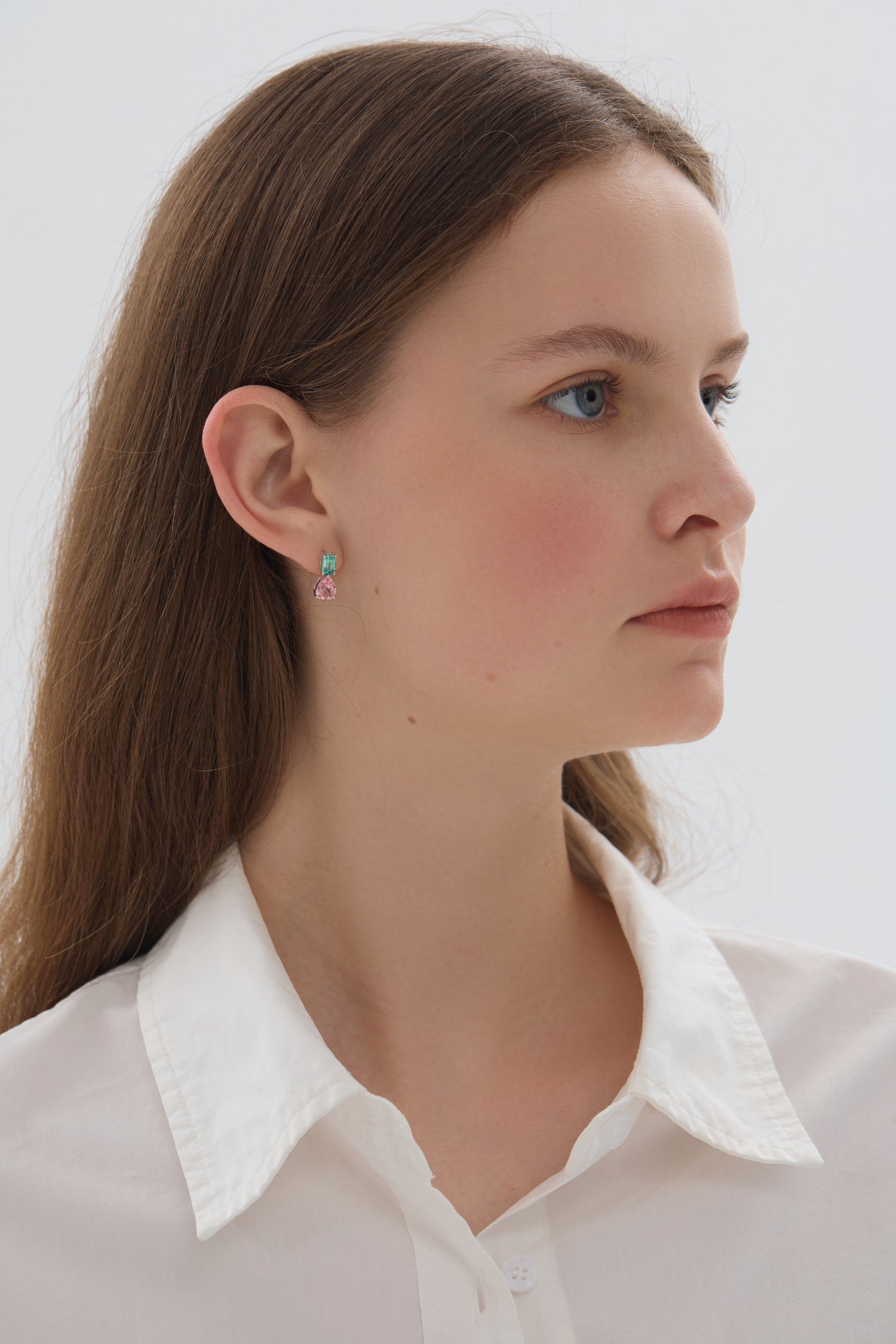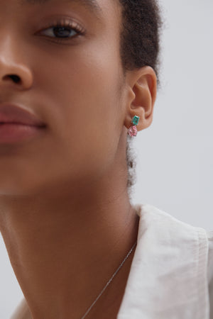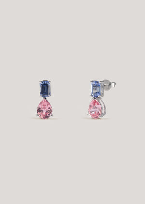 Delicately crafted in 14K white gold, the Serenade Duo Drops offer a graceful combination of elegance and vibrant color. Featuring a top emerald-cut gemstone and a pear-cut drop, this design embraces a harmonious blend of shapes and hues. Choose between the serene blue sapphire or the enchanting Padparadscha sapphire.